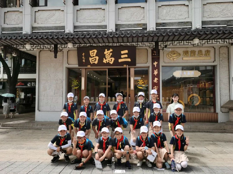 在三万昌茶馆,茶艺老师向小营员介绍了茶的起源、分类,以及碧螺春的制作技艺、冲泡方法等,孩子们还从茶礼中感受为人之道。随后,茶艺老师开始演示一杯好茶的制作流程,仔细讲解温杯、注水、投茶、洗茶、冲泡、品茶等各个步骤的要领。在了解茶文化知识后,小营员还品尝到了令人齿颊留香的碧螺春冷泡茶。