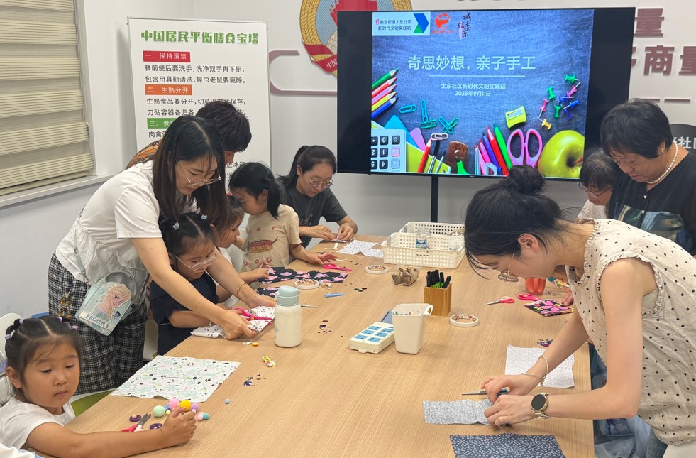 太仓市娄东街道太东社区“巧手焕新意,碎布生瑰宝”亲子手工活动