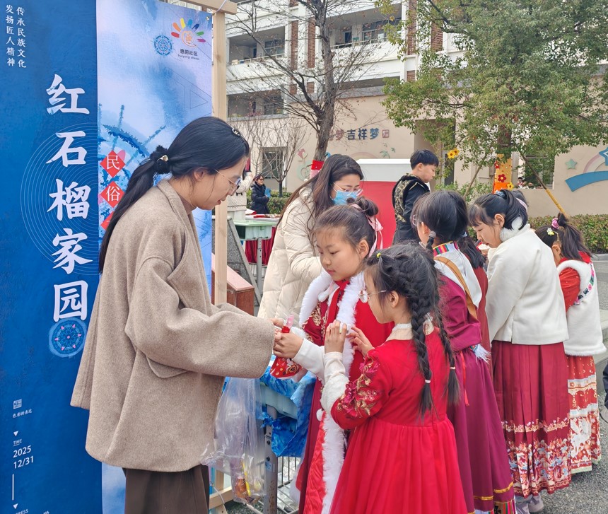 “校园民俗文化节”不仅为社区青少年搭建了文化交流的平台,更让大家在协作互动中增进了民族情感,深刻体会到“各民族像石榴籽一样紧紧相拥”的团结内涵。活动间隙,孩子们还聊起不同民族的新年习俗,在轻松的交流中让民族文化知识深入人心。