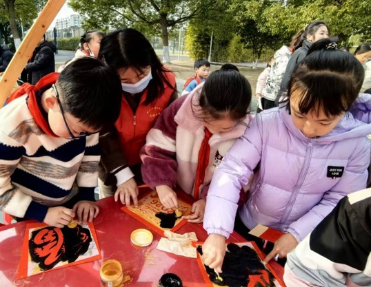 元旦佳节里,太仓市浏河镇闸北社区关工委联合明德小学开展"非遗传承进校园 爱心义卖迎新年"活动。孩子们在欢声笑语中体验非遗宋锦、福字拓印传统技艺的文化魅力。