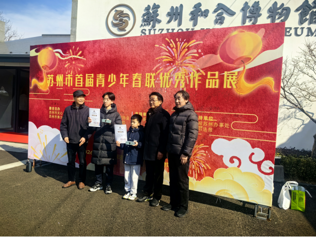 2026年2月9日下午,由苏州市关心下一代工作委员会、苏州市青少年书画协会联合主办的苏州市首届青少年春联优秀作品展览,在和合博物馆隆重开幕。市关工委副主任陈兴南出席活动并讲话,市文联原党组书记朱建平、凤凰书社理事长王根伟等领导专家及参展青少年、家长代表参加开幕式。