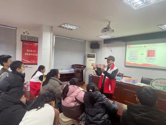 二、邮说党史,传承红色精神血脉。“一枚邮票,就是一段浓缩的历史。”在红色文化宣讲环节,季军以“小邮票里的大党史”红色文化传承活动为主题,结合长征主题、革命纪念主题等红色邮票,生动讲述背后的革命故事与奋斗历程。从长征路上的艰难跋涉到新中国成立的辉煌时刻,邮票成为串联历史的“微型教科书”。孩子们积极举手互动,分享自己对党史故事的理解,在一问一答中加深了对红色文化的认知,厚植了爱党爱国的真挚情感。