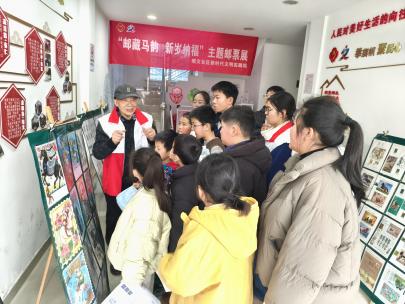 一、邮展赏韵,解锁马年文化密码。活动现场设置“马韵主题邮票展区”,一幅幅装帧精美的生肖马邮票、主题邮品整齐陈列,色彩绚丽的票面生动展现了不同年代马的艺术形象与文化寓意。“社区五老”季军担任讲解员,用通俗易懂的语言为孩子们讲解邮票的发行背景、设计理念与收藏知识,从庚午年马年邮票的经典图案到现代邮品的创新表达,孩子们驻足围观、认真聆听,不时发出惊叹,在近距离观赏中领略方寸邮票的独特魅力,感受中华传统文化中“马到成功”“龙马精神”的美好寓意。